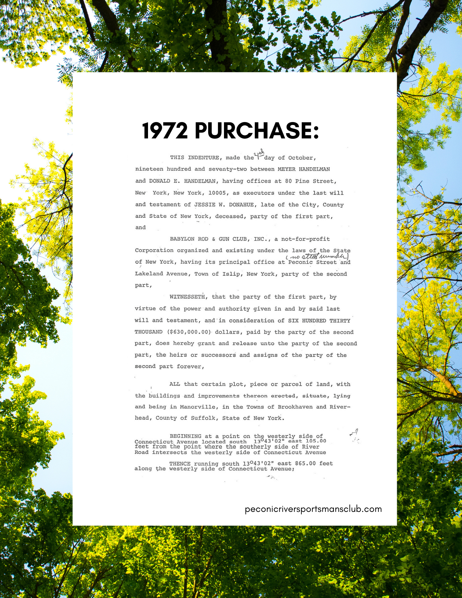 Our story begins back on April 28th, 1948 with the formation of the Babylon Rod and Gun Club in the Village of Babylon. Meetings were held at member’s homes and land was leased locally for hunting and shooting.